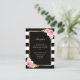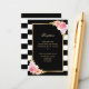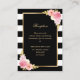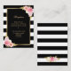 Elegant black and white striped floral wedding reception card featuring watercolor blush pink flowers and gilded greenery. Matching items available