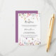 Cette carte classique colorée et florale de réception de mariage est parfaite pour un mariage moderne. Le design présente des fleurs sauvages jaunes, violettes et blanches avec du feuillage dans un arrière - plan rose et vert aquarelle.