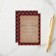 Une carte de réception de mariage rustique avec une illustration de branches d'arbres persistants. Le fond est en plaid rouge et noir.