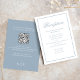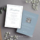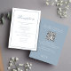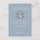Laissez-vous séduire par cette élégante carte de réception, décorée dans un style bleu poussiéreux et dotée d'une palette élégante et raffinée. Conçue avec un script de calligraphie élégant et une typographie formelle classique, cette carte allie élégance et fonctionnalité moderne. Il comprend une section de détails de code QR mariage, guidant les invités à votre site mariage RSVP et des options en ligne de réponse moderne. Partagez des chambres simples et tous les détails essentiels sur le Web dans un design épuré et transparent.