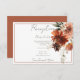 Ce design moderne et rustique de la carte de réception de mariage comprend un bouquet d'angle de pêche rouille, rouille, terre cuite, fleurs brunes et blanches. L'arrière - plan est blanc avec un cadre fin en terre cuite; le dos est une terre cuite molle. Ce design fait partie de la Rustic Terracotta Rust Flowers Mariage Suite de cartes créées par Simply Farmhouse Press.