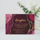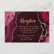 Make a bold and elegant statement with this burgundy red and gold agate marble wedding reception card. Featuring rich jewel-toned wine and crimson hues, organic stone textures, and shimmering gold accents, this design beautifully complements a luxurious wedding celebration. Perfect for formal, modern, or glamorous events, the dramatic contrast of burgundy red and metallic gold sets the tone for an evening of cocktails, dinner, and dancing. Fully customizable with your reception details, this agate-inspired reception enclosure adds a refined and cohesive touch to your wedding stationery suite, ideal for fall or winter weddings.