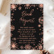 Cette carte élégante et séduisante de demande de livre comprend des flocons de neige en parties scintillant d'or rose d'aquarelle et des étincelles sur un arrière - plan noir. Il est parfait pour un baby shower à thème d'hiver ou de Noël.