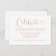 La carte d'enceinte de réception de mariage, en or rose moderne et blanc (les couleurs peuvent être modifiées), présente un design typographique élégant avec un script de calligraphie chic et un accent du coeur. Le texte personnalisé simple et élégant qui peut être personnalisé aux invités invitations pour "célébrer" le mariage, y compris le nom du lieu de réception, l'adresse et l'heure d'arrivée.