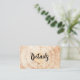 Facilitez l'accès à tous les détails mariages importants grâce à cette carte rustique à grains de bois. Customisez et personnalisez-le avec votre site Web mariage, votre code QR et des informations supplémentaires. Le design comprend une dalle d'écorce d'écorce en résineux, créant une esthétique naturelle et rustique qui s'aligne sur votre thème. La carte boîtier est le complément parfait à l'invitation correspondante de nos suites mariages. Il ajoute une touche cohérente et coordonnée à votre papeterie mariage. Le mot "Détails" est joliment écrit dans un script de style manuel, ajoutant une touche de charme et d'élégance. En incluant un code QR et votre site Web mariage, vous pouvez fournir à vos invités un accès facile à toutes les informations nécessaires, telles que les détails du lieu, les options d'hébergement et les instructions RSVP. Cette carte d'enceinte garantit que vos invités sont bien informés et ont tout ce dont ils ont besoin pour célébrer votre journée spéciale. Contactez info@lddesignloft.com si vous avez des questions concernant ce modèle de conception.