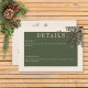 Voici notre carte enchanteresse de détails de mariage hivernal, où l'élégance intemporelle rencontre la beauté de la saison. L'arrière - plan crème, astucieusement affligé de doux accents blancs, donne un ton captivant à votre journée spéciale. Dans la zone de texte vert sauge foncé, vos détails mariages brilleront, entouré d'un cadre vert sage clair délicat qui ajoute une touche de raffinement. Laissez-vous séduire par l'esprit de l'hiver avec ses touches époustouflantes de verdure, avec ses saints ornés de fruits rouges riches, ses mausolées aux délicates baies blanches et son charme intemporel de pin vert. Ce design d'hiver d'inspiration merveilleuse saisit l'essence de la saison et invitation vos invités à célébrer votre amour dans un cadre qui respire la grâce naturelle et le charme festif. Avec ce design, vous êtes sûr de préparer le terrain pour une célébration remplie d'amour et de joie. Laissez-vous séduire par la magie de l'hiver et laissez votre mariage être le reflet de la beauté de cette saison. Il fait partie de la suite Rustic Winter Berries & Pine Cream mariage. Créé par Simply Farmhouse Press.