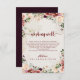 Ce mariage à fleurs d'été rustique qui souhaite une bonne carte d'enceinte est parfait pour un mariage simple. Le design est composé de fleurs d'aquarelle bordeaux, roses et rousses avec des feuilles verts dans un arrière - plan verni brun.
