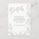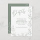 Présentez notre carte de boîtier minimaliste et tendance pour mariage Details, avec un blanc serein et une couleur verte saga ornée d'un design floral simple mais élégant. La délicate calligraphie vert mer ajoute une touche de sophistication à cette carte blanche Détails Enclôture, ce qui en fait un choix idéal pour une célébration mariage moderne.