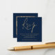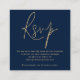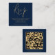 Script QR Code Gold Navy Blue Wedding RSVP boîtier permettant à vos invités de répondre en scannant votre code QR menant à la page de réponse de votre site mariage. Un carré MINI de 2,5" à joindre à vos invitations. RSVP est dans un élégant script set et personnalise facilement le reste des mots à votre propre et remplacez l'exemple de code QR au dos par le vôtre qui sera généré automatiquement lorsque vous remplacerez l'exemple url par le vôtre.