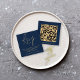 Carte D'accompagnement Script QR Code Mariage or Marine bleu RSVP