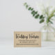Les cartes d'information du site web mariage de charme sont composées de polices de style manuscrites noires et d'un arrière - plan qui a un aspect rustique texturé brun kraft.