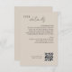 Cette carte de détails mariage chic comprend un code QR du site Web mariage, du texte entièrement personnalisable et un ensemble contemporain de polices noires brunâtres, contre un élégant arrière - plan beige taupe. Cette carte fait partie d'une collection moderne minimaliste de mariages, facile à utiliser, mélangez et assortissez des stationnaires de couleur neutre pour toutes les saisons.