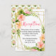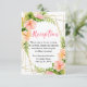 This fun and whimsical wedding reception enclosure card features watercolor pink and orange hibiscus flowers, monstera leaves and foliage on a gold geometric frame. The text combines handwritten script and serif fonts for a stylish and modern look. This is perfect for a spring or summer rustic wedding.
