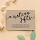 Célébrez le début de votre voyage avec notre élégamment rustique moderne kraft thème, élaboré "Une note sur les cadeaux" faire-part de mariage carte, souhait, argent. Avec un mélange sophistiqué d'écriture moderne et d'allure romantique, chaque carte est méticuleusement conçue pour transmettre l'essence de votre journée spéciale. Parfait pour les couples à la recherche d'une façon unique de partager leurs rêves de lune de miel, cette carte invitation vos proches à contribuer à des expériences inoubliables. Que vous soyez blotti dans une enveloppe luxueuse ou présenté en même temps que vos invitations de mariage, notre carte ajoute une touche d'enchantement à votre célébration, promettant des souvenirs chéris qui dernier une vie. Conçu par TeeshaDerrick.