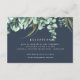 Nos Cartes Botaniques Eucalyptus Reception sur un bleu de minuit sont conçues pour coordonner avec notre Collection Botanique Eucalyptus Wedding Invitations. Un jet d'eau d'eucalyptus feuilles et de feuillage vert botanique vient compléter cette carte d'information de réception. Personnalisez facilement vos coordonnées de réception de mariage.