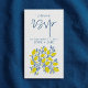 Cette charmante carte RSVP est conçue pour se coordonner harmonieusement avec votre suite mariage, avec une combinaison lumineuse et joyeuse de jaune citron et bleu. Le "RSVP" en caractères bleus, gras et élégant, attire l’attention, tandis que les instructions, y compris les noms du couple et la date limite du RSVP, sont affichées dans une police serif propre et facile à lire. Le fond de la carte est orné d'une charmante illustration de branche de citron, ajoutant une touche vivante et rafraîchissante au design. Parfait pour les mariages du printemps ou de l'été, cette carte offre un équilibre parfait entre une formalité élégante et une jouabilité éclatante.
