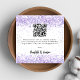 Un fond blanc classique, du texte noir. Décoré de parties scintillant violette, lavande couleur faux. Code QR : ajoutez votre lien/url à votre site web mariage pour RSVP. Personnalisez et ajoutez vos noms.