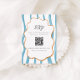 Wedding QR code enclosure card with a hand drawn, blue and orange, whimsical striped frame design - perfect for a spring or summer destination wedding.