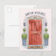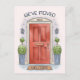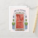 Carte de voeux Extraordinaire qui comporte une porte rouge d'une maison avec des plantes et la citation customisée "Nous avons déménagé". Fonctionne très bien pour tous les modèles de jour mouvants. Bon appétit !