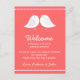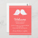 Cette carte de sac de bienvenue mariage comporte deux inséparables mignons faisant face l'un à l'autre, un arrière - plan rose doux et un texte personnalisable. Vous pouvez modifier la couleur de l'arrière - plan en cliquant sur le bouton customiser, puis en modifiant. Cette carte peut être attachée à des cadeaux de bienvenue/sac pour les mariages extérieurs à la ville.