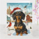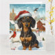 Ce design festif reflète l'esprit joyeux de la période des fêtes, avec un adorable petit portant un chapeau de Père Noël. Le chien est niché dans un pays des merveilles hivernales, avec un bonhomme de neige, un sapin de Noël décoré et des cadeaux joliment emballés. Les flocons de neige tombent doucement, ajoutant une touche magique à la scène, tandis que les couleurs vives des décorations de vacances créent une atmosphère chaleureuse et joyeuse.