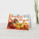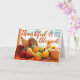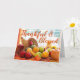 Carte d'action de grâce Cornucopia, généreuse et bénie. Le message d'accueil dit "De notre famille à la vôtre, Bon thanksgiving". Vous pouvez changer le texte en votre propre message personnalisé en utilisant le bouton "Customiser".