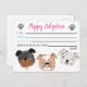 Cette adorable carte d'adoption de chiot est l'ajout parfait à toute fête d'anniversaire à thème de chiot. Associez-le à un nouveau chiot farci pour vos invités et laissez-les rapporter une carte d'adoption "officielle". Cette carte est entièrement personnalisable et peut être changée selon vos besoins spécifiques.