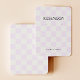 Carte d'affichage à oreilles avec un mignon motif lilas à damiers. Les trous modèles peuvent être ajustés ou supprimés, ainsi que toutes les informations de votre entreprise. Ajoutez vos médias sociaux ou votre site web en bas.