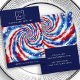 Écouter la carte d'affichage du produit avec un motif de teinture à cravate patriotique étoiles et rayures en bleu, blanc et rouge, et votre logo personnalisé. Texte personnalisable à l'arrière.