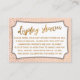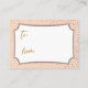 Si vous êtes l'hôte d'une douche d'affichage sans cadeau pour une future mariée, cette carte moderne et festive pourrait être le choix pour vous. Sur des badges blancs élégants et en utilisant une police de script manuscrite décontractée, j'ai ajouté un en-tête de typographie graphique qui dit "douche d'affichage" sur le devant, avec "à" et "de" pour le côté de la balise cadeau. Chacune de ces entêtes a été ornée d'une fausse texture de feuille d'or pour une ambiance festive. Derrière les badges, l'arrière - plan de la carte est recouvert d'un motif de confetti en feuille d'or simulé. Un champ modèle a été mis en place pour donner des instructions aux clients qui n'enveloppent pas leur cadeau, dans une couleur dorée correspondante. N'hésitez pas à modifier le libellé de quelque façon que vous le souhaitez. Il existe de nombreuses alternatives populaires à ce texte, si vous souhaitez un changement. L'arrière - plan a été paramétré sur un rose pâle modifiable ; vous pouvez également le modifier à n'importe quelle couleur que vous préférez. // 100 // Conçu par Melody Watson pour Paper Muserie.