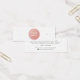 Carte d'affichage de mini produit avec icônes de médias sociaux et logo personnalisé sur un faux cercle d'or rose (image imprimée). Les repères d'oreille peuvent être ajustés en ajoutant et en enlevant des espaces dans le champ modèle, et en déplaçant l'élément entier dans l'outil de conception.