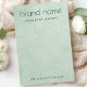 Écouter la carte d'affichage du produit avec votre marque dans une police de script moderne sur une texture arrière - plan douce vert clair. Texte et logo personnalisables sur le dos.