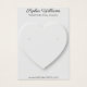Une élégante carte d'oreille bijoux avec marqueurs de trou pour un placement personnalisable. Parfait pour mettre en valeur vos boucles d'oreilles avec un look poli et professionnel. Conception d'un coeur d'argile blanc cassé avec des ombres créant un effet 3D. Cette carte n'est pas fournie avec des trous ou des bouts prédéfinis. Les coupes ne sont que simulées et servent de guide pour vous couper à l'aide d'un cutter ou de ciseaux. Remarque - Le mot JEWELRY est mal orthographié dans la conception, avant de commander assurez-vous de modifier le texte.