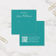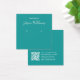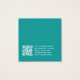 Une carte d'affichage minimaliste turquoise : texte blanc sur arrière - plan turquoise, avec les places d'oreille indiquées par deux très petits cercles. Le nom est écrit dans un script moderne. Il a une morue QR à l'arrière, dans la partie inférieure, à gauche de l'info.