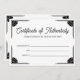 Joli certificat d'authenticité carte à plat en noir et blanc à laquelle vous pouvez ajouter votre nom ou nom d'entreprise dans un cadre avec des coins de marguerite simples. Assurez-vous que vos clients et clients savent que leur oeuvre est originale et unique avec ce certificat d'authenticité floral personnalisé avec votre nom et, au verso, des informations supplémentaires comme votre site Web. Signez le certificat d'authenticité carte à la main sur les lignes pratiques. Ajoutez-le commandé par, date et signez-le.