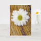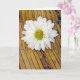 Marguerite blanche avec gouttelettes d'eau sur tapis en bambou.