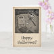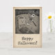 Squelette dansant avec un casquette et danse en canne dans le cimetière devant sa tombe. Illustration de Scott DuBar
