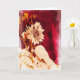 Un tournesol dans le blanc sur un arrière - plan rouge abstrait. À l'intérieur de sont les souhaits d'anniversaire.
