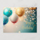 Carte de vœux festive avec ballons dorés et bleus et confettis