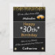 Carte d'anniversaire 30th Mans, vintage, noir et or, téléchargeable