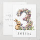 Rendez le 3e anniversaire d'un tout-petit encore plus spécial avec cette charmante carte, qui présente une délicate illustration à l'aquarelle du chiffre 3, magnifiquement réalisée à partir de minuscules fleurs pastel colorées. Un adorable lapin se tient debout à côté du chiffre, grignotant joyeusement les fleurs, ajoutant une touche de douceur et de joie au design. Que vous soyez un parent, un grand-parent ou un ami de la famille, cette carte enchanteresse est sûre de faire sourire le petit et ses proches.