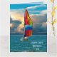 voilier avec spinnaker arc-en-ciel sur l'eau bleue et ciel d'été arrière - plan pour anniversaire