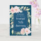 Joyeuse 5ème anniversaire de mariage carte avec de belles fleurs d'aquarelle rose motif et verset sentimental.