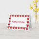 Joyeux anniversaire sur une carte blanche de style champêtre avec une bordure de pommes rouges. Design de bois et effet aquarelle par Indie Artist WindyDesign.