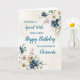 Une belle carte pour votre camarade de classe pour son anniversaire avec d'élégantes fleurs bleu marine et couleur crème.