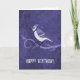 Un geai bleu perché sur une vigne avec un arrière - plan à texture bleu/violet. Sur le devant, on peut lire "Joyeux anniversaire" et à l'intérieur, on peut lire "Bonne fête !"