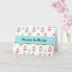 Cette carte d'anniversaire est parfaite pour tous les anniversaires que vous venez de présenter. Il dispose d'un arrière - plan couvert de petits cupcakes colorés. Un graphique d'un ruban bleu traverse le centre avec les mots Joyeux Anniversaire. Tout le texte est personnalisable.