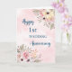 Bonne 1ère carte anniversaire mariage avec de belles fleurs d'aquarelle rose motif et verset sentimental.