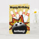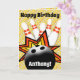 Une boule de bowling et des épingles composent cette carte d'anniversaire amusante. Personnalisable pour pouvoir ajouter votre propre texte et modifier la couleur de l'arrière - plan.