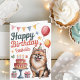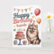 Cette adorable carte d'anniversaire de chien Poméranie personnalisée comprend un dessin de chien d'aquarelle mignon, ainsi qu'un gâteau d'anniversaire et des décorations d'anniversaire. L'avant des cartes d'anniversaire comprend un endroit où vous pouvez personnaliser avec votre nom ainsi que les mots "Joyeux anniversaire". Le message à l'intérieur de la carte dit : "J'espère que votre anniversaire est extraordinaire !"
